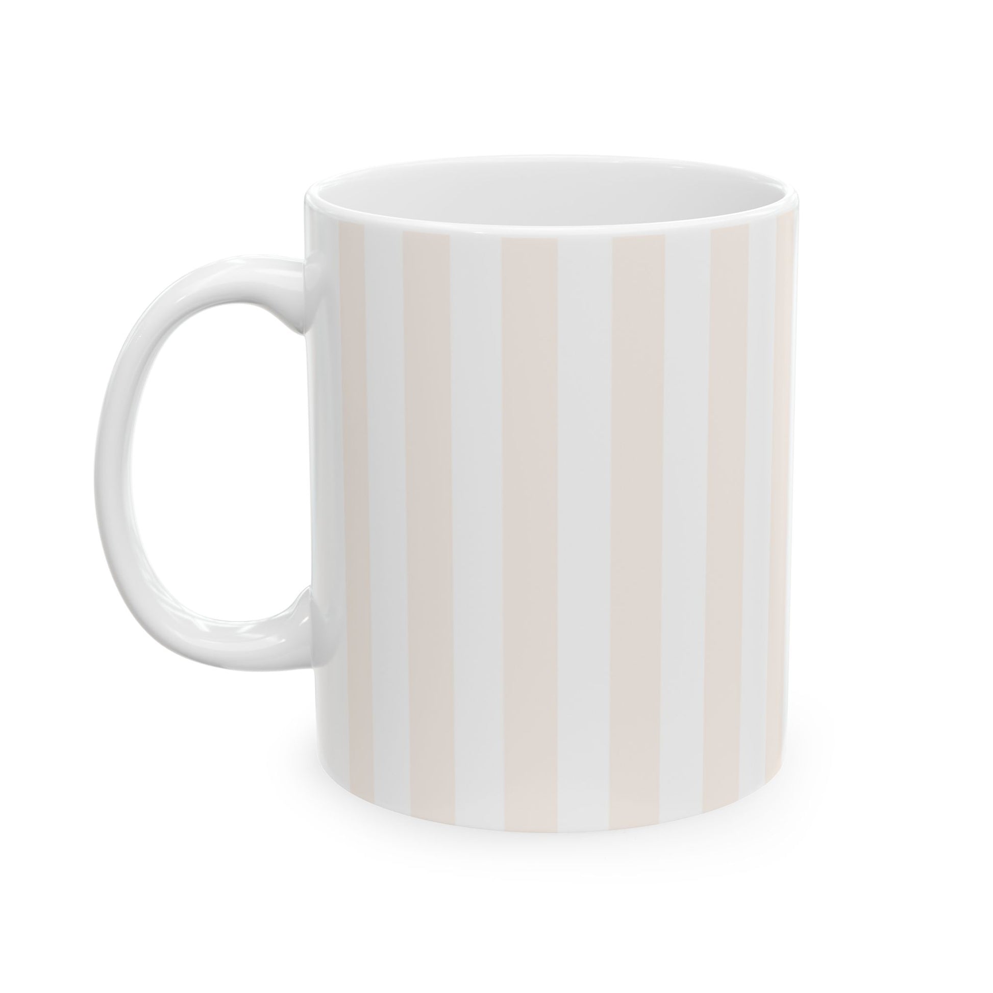 Soft stripes, warm sips — made for slow mornings and sweet thoughts. This blush pinstripe mug adds a touch of charm to every sip. It's BPA and Lead-free, microwave & dishwasher safe, and made of white, durable ceramic in 11-ounce size. Thanks to the advanced printing tech, Made by Blondi ♡ designs come to life with beautiful, clean colors – perfectly pretty for a coffee, tea, or cozy moment.