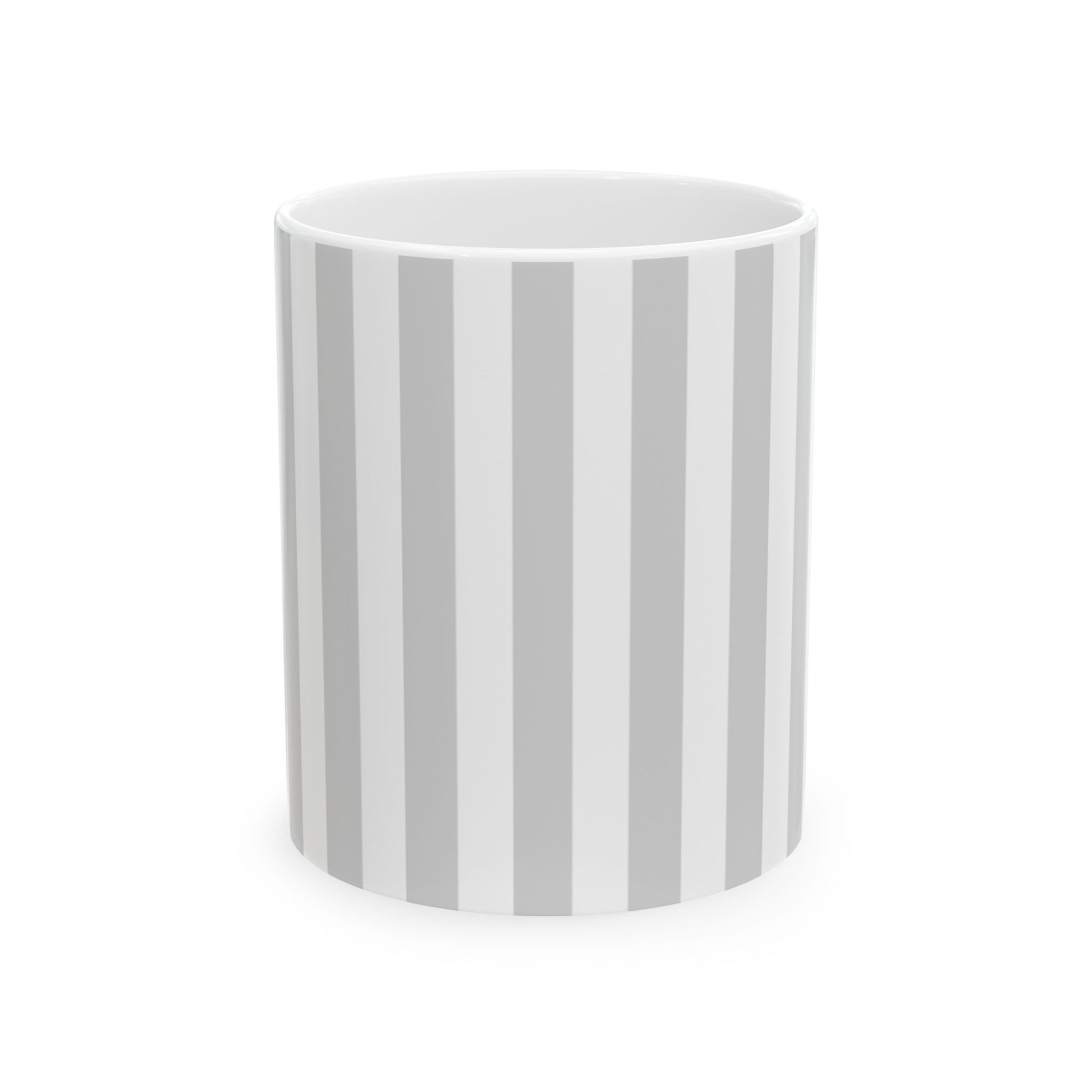 Soft stripes, warm sips — made for slow mornings and sweet thoughts. This grey pinstripe mug adds a touch of charm to every sip. It's BPA and Lead-free, microwave & dishwasher safe, and made of white, durable ceramic in 11-ounce size. Thanks to the advanced printing tech, Made by Blondi ♡ designs come to life with beautiful, clean colors – perfectly pretty for a coffee, tea, or cozy moment.